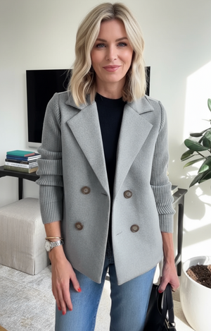 Der Sasha Casual Blazer Coat kombiniert die elegante Silhouette eines Blazers mit der Weichheit Ihres gemütlichsten Stricks und definiert Komfort neu. Er ist aus ultraweichem Rippenstoff gefertigt und fühlt sich an wie Ihr Lieblingspullover, sieht aber maßgeschneidert und edel aus .