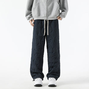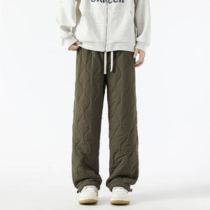Stay warm and comfortable during the colder months with these stylish insulated quilted pants. Designed with a cozy fleece lining and wide-leg fit, they combine function with a modern relaxed aesthetic for everyday wear.