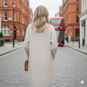 Premium Knit: A soft, dense weave that provides thermal insulation without feeling heavy.Elongated Length: Offers extra protection from the wind, elegantly covering the hips and legs.