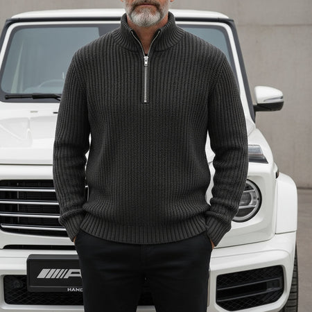 The Strada Stitch Quarter Zip Sweater brings timeless style with a modern edge. Featuring a thick, structured shaker stitch, this piece blends warmth, texture, and durability in one refined design. Finished with a sleek quarter-zip collar, it’s available in deep charcoal gray, rich navy blue, warm taupe, and classic black.
